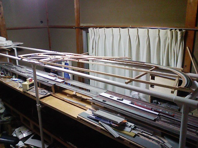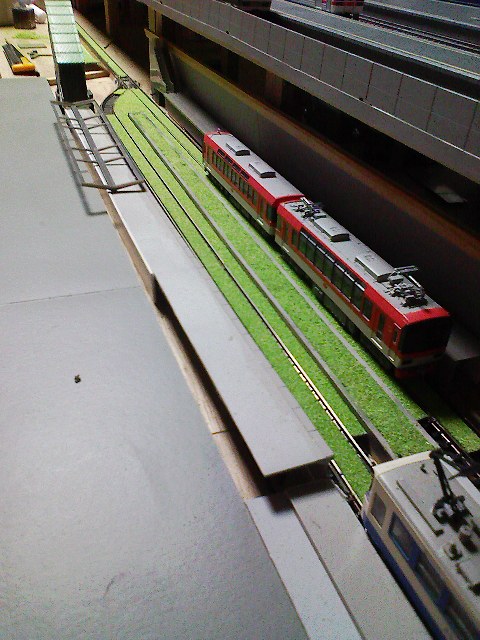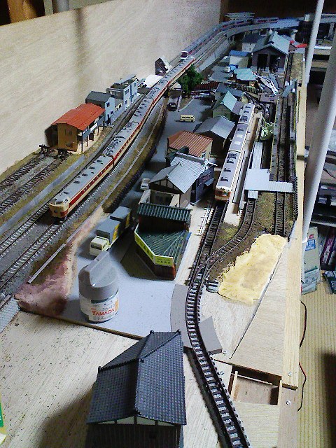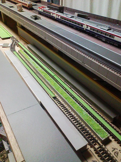 うちはSLは動態保存程度なので、C62は重荷なんですよ。。。 私鉄駅の工事状態です☆。 芝生軌道にしようかと検討中? |