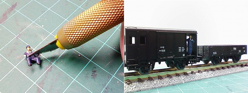 情景コレクションの働く人買って来ました。 3種類あったんですが、最初どこが違うかさっぱり...店頭で5分悩んだり。 EF65に乗務させるために買ったんですが全く目立たない。 あと少し大きめのような気がしました。人形とはいえ、切断は少し躊躇しましたw |
