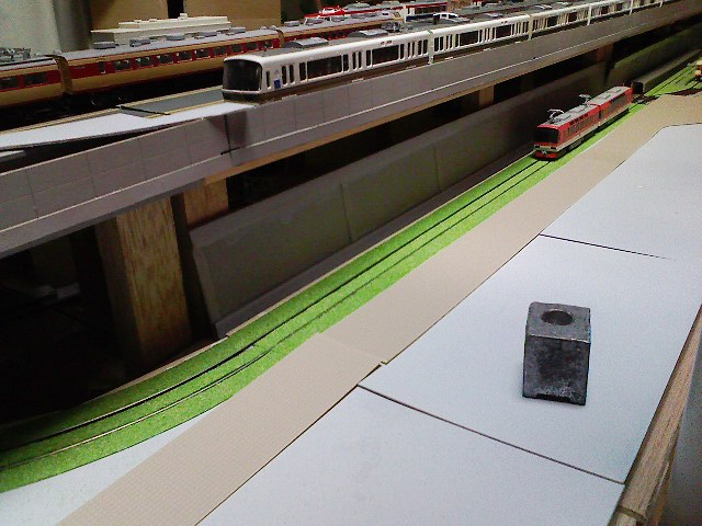その過程で点字ブロックが小さすぎることが発覚 orz ちょっと大きく塗り直しですね、ホームのブロック。。。 |