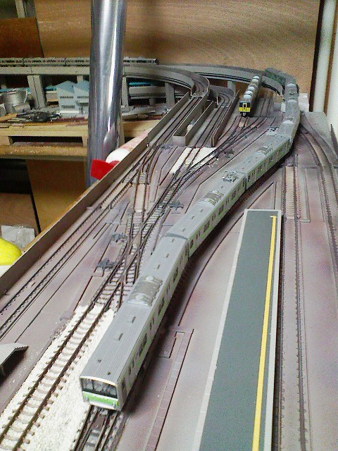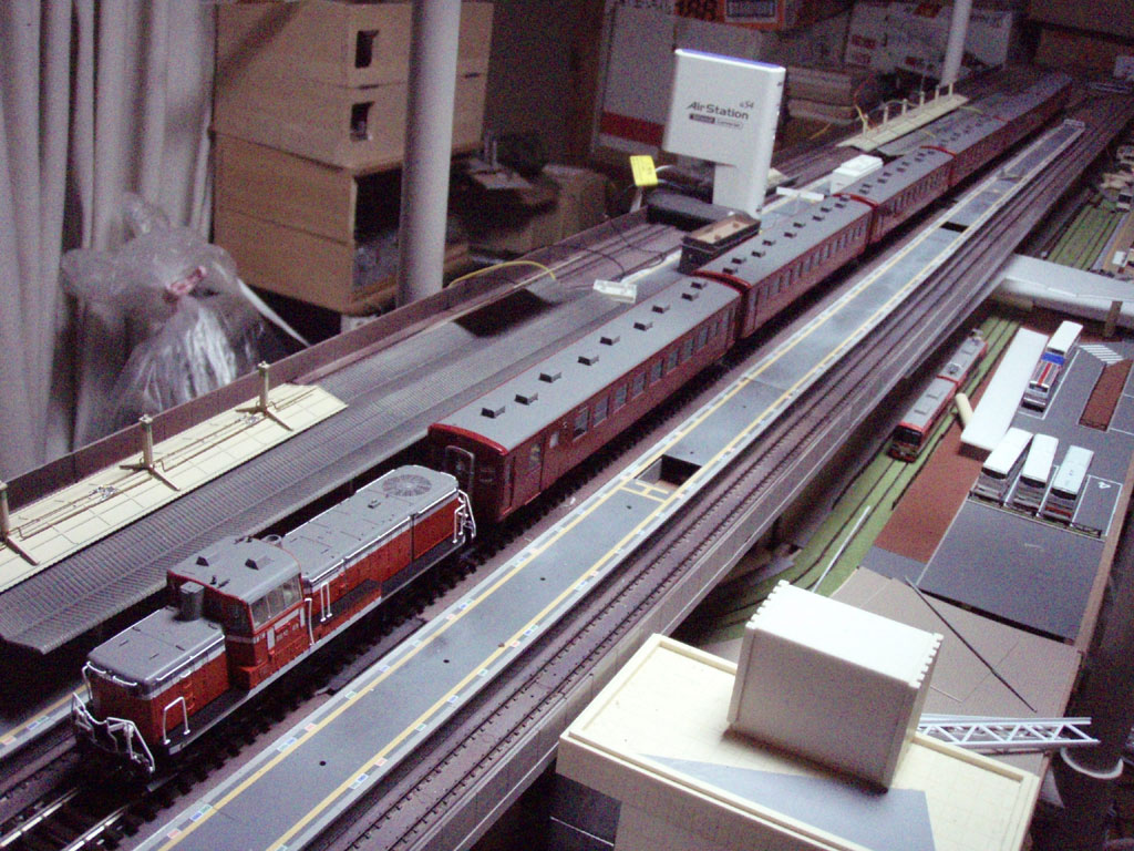 187が止まってるところは、機待ち1番ですねー。 1番が重連対応で2番が単機線用です。 将来的には、下層からDLで上がってきたのがここでカマ交換ですから。 >Minamiさん 実は反対側はシーナリー無しです。 ほら、この先家を建て替えたあとに2期工事が待ってますから。。。 それまでは仮設でカーブモジュールでつながります。 具体的にはこんな感です。 http://www2.sironeko.tv/ThreadBBS/test/read.aspx/train/42542/145-146 続編始まりますかぁ。 やっぱりブームなんですねー。 >あきらさん がんばれー☆。 >かふんしょー。さん 58は次の写真の手前側に止まるはず。。。 引き上げは駅の反対側です☆。 駅っていろんな線路がありますからねぇ。 その辺をうまく取り込むと不思議にいい感になりますよぉ。 |