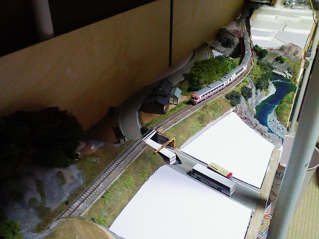 話題は、しっかり拝見しております。 ネタというほどではありませんが、やっとうちの分割式レイアウトも半分ほど 工事が終わりまして、試運転などできる状態になりました。 もっとも春にはまた転勤の噂があり、いったん分解らしいです・・・。 |
