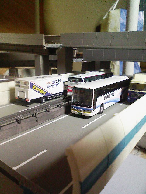 最近の高速道路は路肩が異常に広いので きっと一世代前の主要道路という感じでしょうか。 これでナトリウム灯がついたら完璧ですね。 自分は車両加工(?)をしながら 次のサプライズの準備中です。 |