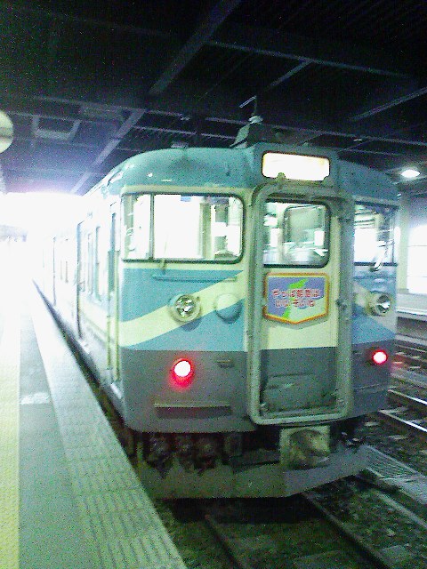 いまは豊岡行の113の中です。豚鼻ヘッドライト〜。 |