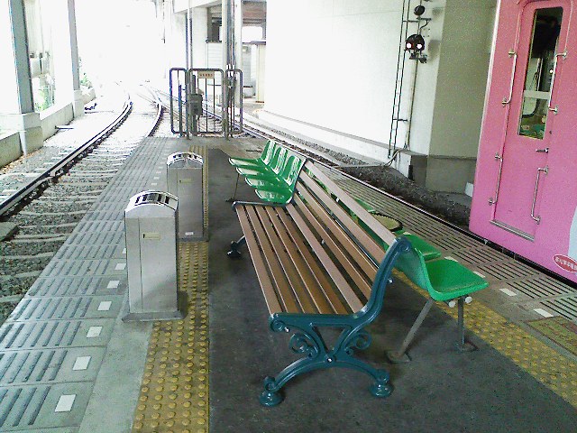 志度線乗車中。 予定より早め! しかし瓦町のホーム、チャレンジすぎな喫煙コーナー! |