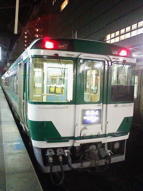 はくたかの遅れを受けて4分遅れ予定。 この列車、6両だけど前3両だけちゅるが行き! なんか嫌な予感して前に乗ってよかった。。。 ってか、413ですか(鬱。 先頭だけ異端の455でよかった。。。 4時間の長旅ですよ! |