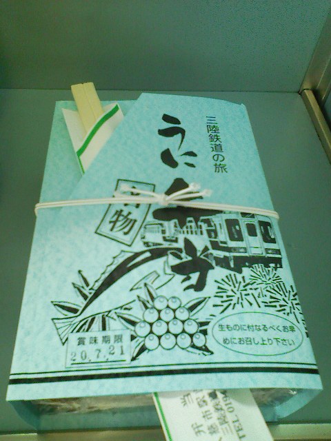 ここからは先頭の展望車です☆ どーせリアス線はトンネルばかりなので方向の変わる宮古までは我慢してたのです。 久慈で1日20個限定のうに弁当も買ったし、あとは適度な時間になったら食べるだけ☆ しかし快適列車で4時間、お得な移動ですねー。 ちなみに三陸鉄道のりつぶしで、残るは1路線! |