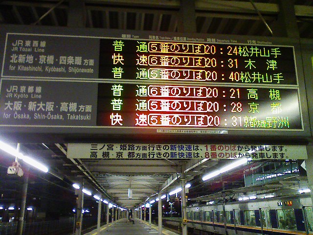 神戸駅で @@がゲ●を吐いて4分遅れ。 芦屋駅で はまかぜ退避で遅れ回復できず 尼崎駅で 遅延3分に短縮。 なかなかの俊足ぶりでした。 |