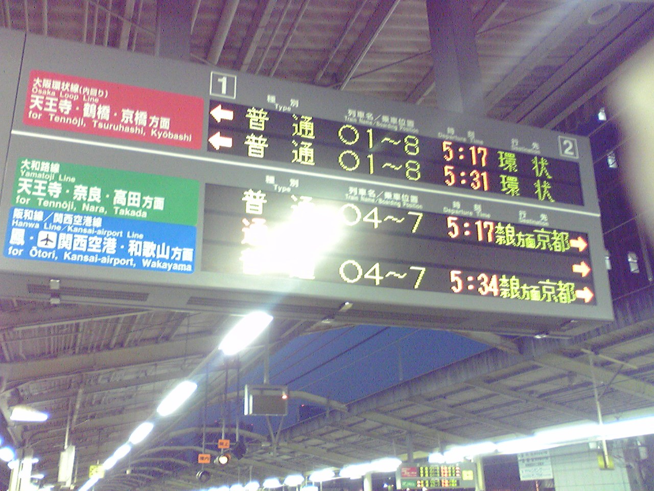 ふざけた行き先の列車です。 1日数本だけあるのよね。 天王寺では隣の逆向きホームと、どちらからも京都行き? 新今宮から乗るよー。 やっぱここはあんまり使いたくない駅。。。 |