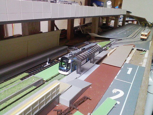 今の郊外電車はなんだかなぁないろで…市内はいいんですが。 30mですかぁ。 1/150で20cm。 計ってみたらぴったり折り返せますっ。 よかったぁ。 |