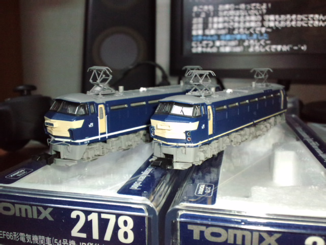 時代の流れに逆らって、富のEF66の新更新色を購入。さらにオクで66の新更新色(54号会場限定品)も落札。 両方、新品です。 最近、通勤時にEF66ばっかり見るんでつい火がついちゃって。 さ、口座と相談しないと。 |