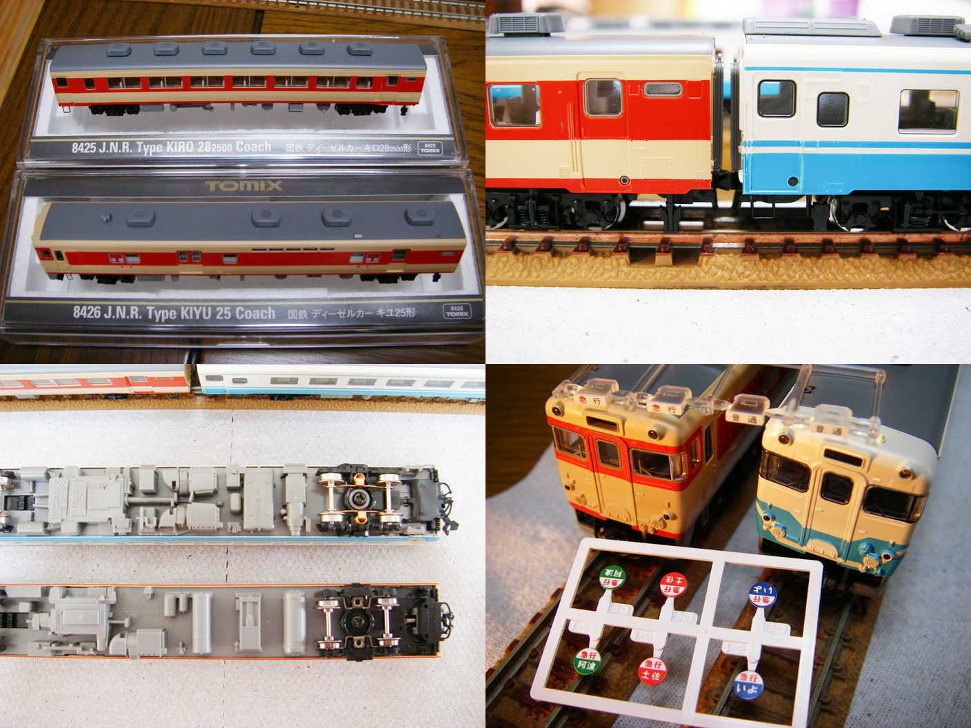 ・・・HG出たての感動は無いねぇ、変更は床下小物程度? カプラがバネで戻る仕様は吉と出るか凶とでるか ・・・ってか、ボディマウントTNって今何種類くらいあるんだ? リニュ同士だと、連結保持がチョット弱い印象、長編成の勾配区間は要注意かなぁ キユ25・・・幕部品別パーツとか何の嫌がらせだよ! 付属パーツも急行、普通のみとか・・・なんもわかってねー 国鉄四国の普通列車は白幕だろがっっ、土佐はもっと橙色に近いのになぁ ・・・58系HGは旧製品の方を中古で増やす流れかなぁ、予定無いけど |