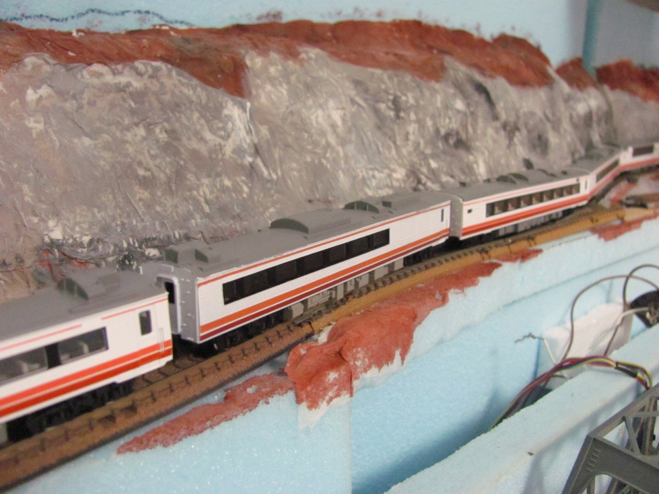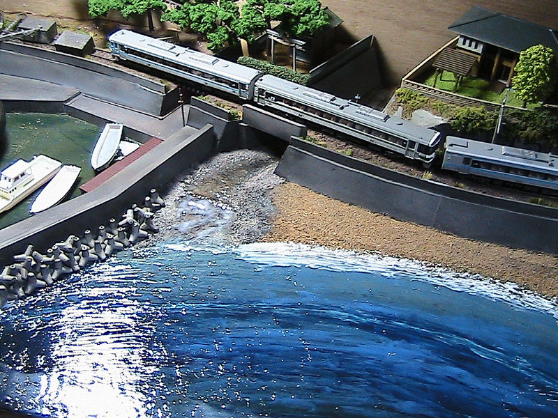 キハ183-500シリーズとキハ185も繋ぐと楽しいですしね!(マテ。 m184はうちでも塗り替え待ちです。。。 さっさとオレンジの500色に塗り替えたいところです。 HET色もいいんだけどなぁ。 海際の工事を少しだけ進めてみたり。。。 |