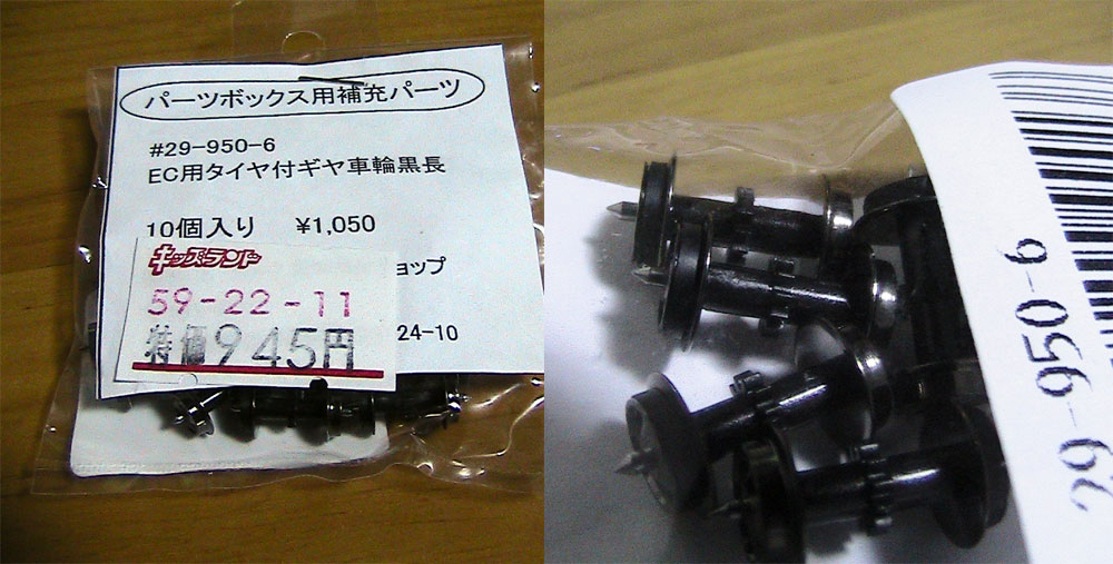 ジュンツーさんのおっしゃるとおりゴム車輪ですよ! それを除去してしまうとスリップ以外にも車輪に段差がでてしまうので走行性能低下にも…。 多分除去した側の車輪部分は他と比べて凹んでいるかと。 ちょうど今日買ってきたので、新品の車軸の写真つけておきますねー。 黒染めタイプだからみえにくいけど。 ゴム部分だけのばら売りもAssyパーツであるので補充するか、もしくはこの写真のパーツのゴム無しタイプをいれるかの2択をお薦めします☆。 ない方が集電性能が上がるのは事実ですし…。 ちなみにこのところのKATO車にはついてない車もぱらぱらと。 E127とか223-2000の4Bとか。 >ジュンツーさん おひさしぶりですー☆。 フォローありがとうございますっ。 うちなんて4軸ともこれに変えたりしてますよ(笑。 それで今日、ちょうど見かけたので買ってきたんです。 長いタイプだったし。。。 |