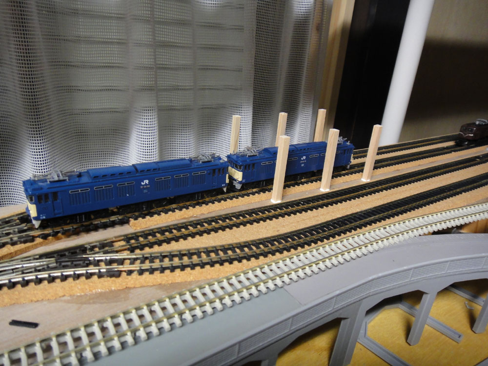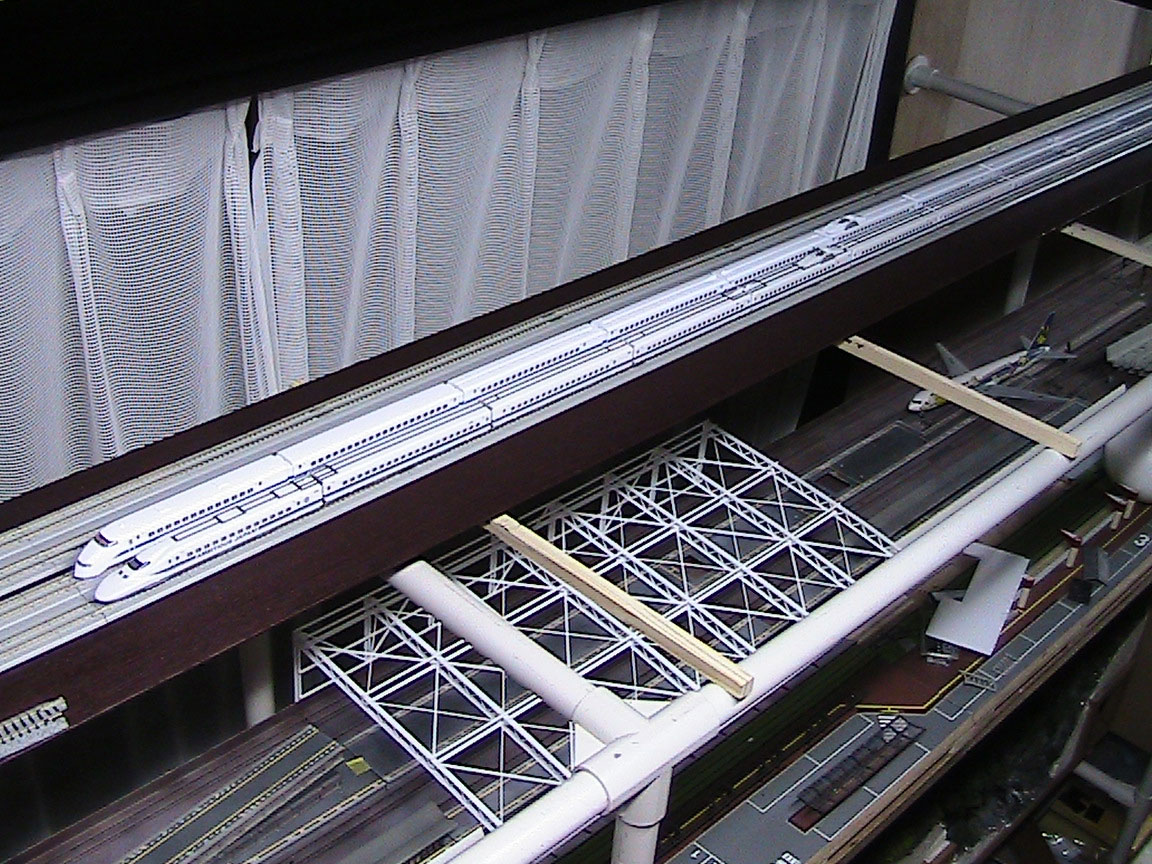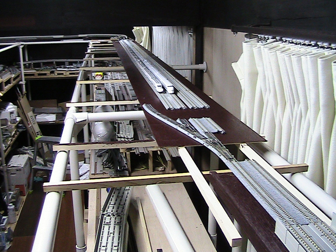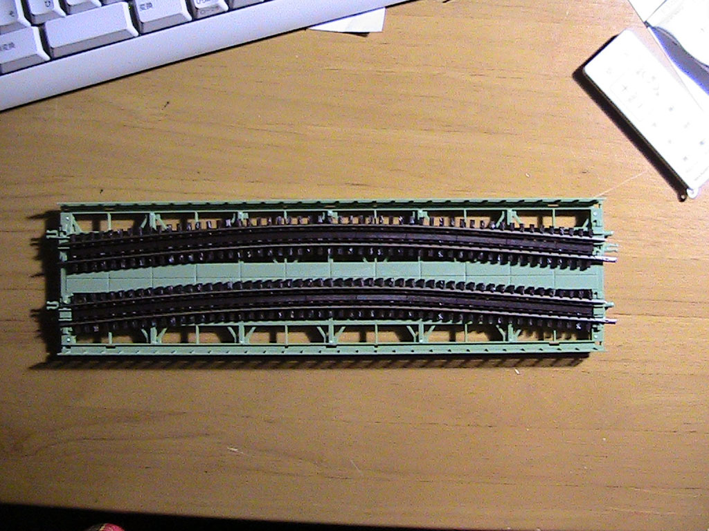 要調整。。。 別で進んでいる下層の通路を渡る鉄橋アプローチ部。 481右→100ストレート→381左→249左のS字です。 ここは2000や8000が映えそうだなぁ。 手間も481でここは90度ターンします。 |