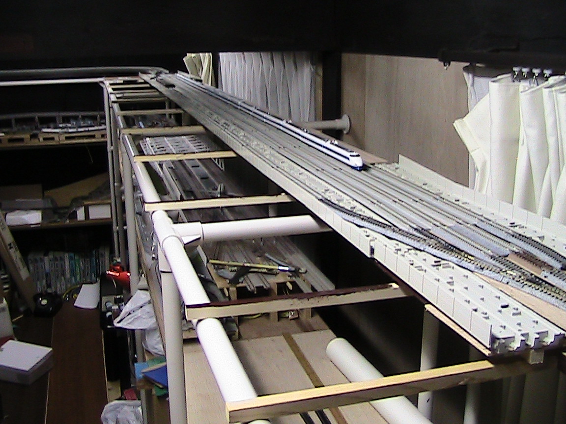 広大なレイアウトルームうらやましすぎます。 でも、畳ですよね。 アングル材などで組むと脚が沈んでレベル確保難しくないですか? 自分は、鉄道イベントで家が傾いているようなボロ屋(詰所)を借りて模型走行を行った事があり、 そのときの畳のレベルをとるのが非常に苦労したのを思い出しました。 畳と脚の間にコンパネなどの緩衝材を入れることをおススメします。 っていうかこのサイズでジオラマ作れるなんて幸せすぎます!! |