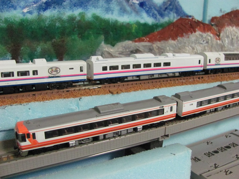 いつも拝見させていただいております。 今回の災害で被災された方々へ心からお見舞い申し上げます。 (スレッド違い申し訳ありません。) このような状況でも先週、三陸鉄道が部分復旧したのは本当に凄いなぁと 管理人様の写真を見て今一度改めて実感しました。(夏の木々と白い車体のコントラストがいいですね。) レイアウト作成、お疲れ様です。上下連絡線という事は多層立てレイアウトの在来区間 を行き来できるようにという感じですかね。>>577の画像の単線高架はよく見ると GMの高架にPECOフレキに見えました、下町路線・臨港線などでよく見る雰囲気なので 親近感が沸きました。既製の高架のみならず、色んな形状が混ざっていてリアルですね。 私もレイアウト(山線にパウダー・バラストまきしたいと思いつつ・・。) やらないとなぁと思いながら少しずつ車両を。。 M184を新特急色に塗装してみました。暖色系の調色の難しさや窓周りの黒から 車体の白を塗った事で厚塗りになってしまったりと、塗装の難しさを再認識です。 でも、編成に入れて一安心。これで何とか長編成も組めそうです。 Mc183-500もやらないと思いつつ、車体の切り継ぎで止まってます・・。 長文失礼致しました。 |