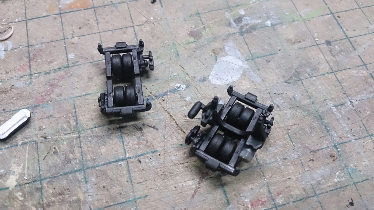 フジミのモノレールの台車組み立て、面倒すぎる。