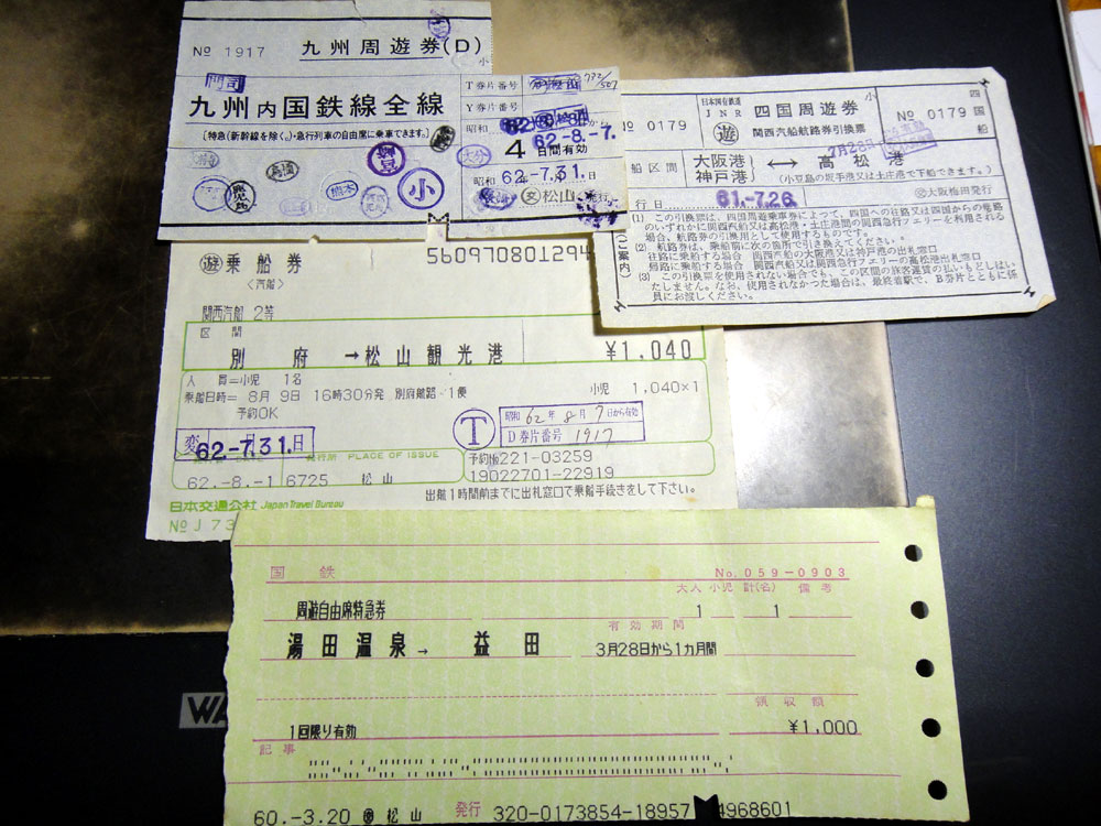 ニューワイドだけど、券片自体は周遊と一緒ですね。 右上のは四国周遊についてたらしい船舶でのアプローチ券。 貰い物で詳細不明。 下の旅行会社マルス券は、周遊券(not 周遊きっぷ)時代のもの。 今の周遊きっぷなんて簡単過ぎって位ややこしいきっぷ? 周遊指定地を2カ所(特定だと1カ所)まわって……ルールややこしいから割愛(マテ。 http://nucl.sci.hokudai.ac.jp/~ohtsuka/document/shuyuken.html の、特急券。 運賃以外にも特典あったっけ? 子どものときすぎて記憶なしと(ぐ。 実際に使った分なんだけどなー。 |