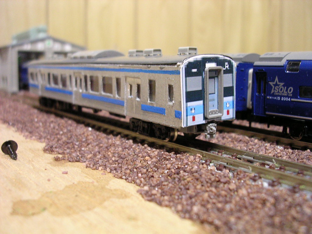 なかなかの技術力ですねぇ もともとは113系?115系? それをステンレス車に改造するとは! うちは いまだにスプレー塗装を うまくすることができないので 車両改造はまったく手をつけずです。 GMのナハフ11ですら うまくできませんでしたからw |