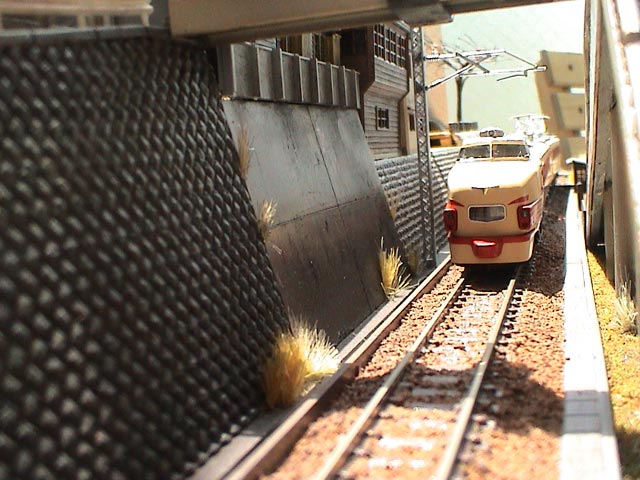 うちも余った資材で作ろうかなぁ。 GMの205側板が大量に……。あ、屋根板がなかったんだ(愚)。 複線の片方がトンネルとか、とってもいい感ですねぇ。 |