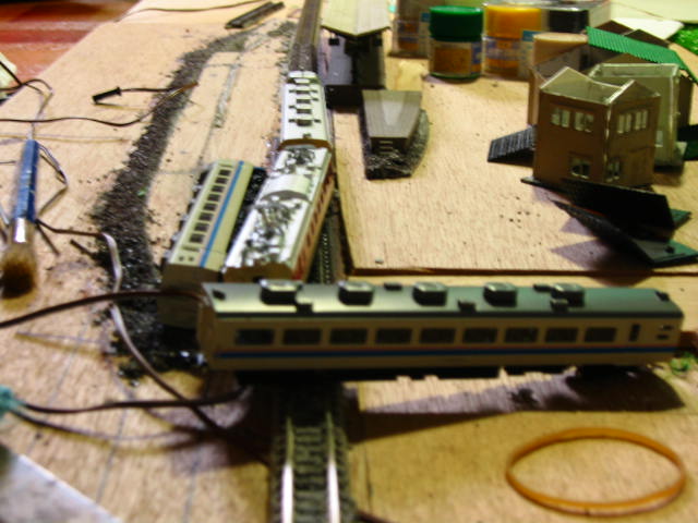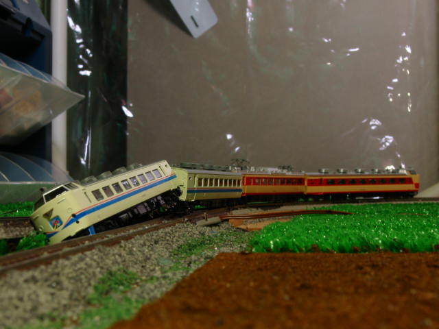 って、本当におきた事故、あのとき2両目までが脱線したんですよね。 2両目を切り離して、後ろ2両を最寄り駅まで回送できたから。 でもって、今、事故車両は留置線に安置されています。 S雷鳥の塗り替え・・・中止とか中止じゃないとか・・・ |