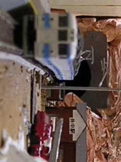 パンタでの集電が効かなくなったため、速度が落ちていた時、線路の接続部に以上が発生し、モーター車すぐ後ろの5号車モハ485が脱線転覆。そのさらに後ろの車輌も脱線しており、運転が完全にストップしています。そのため、後続の列車に影響がでています。