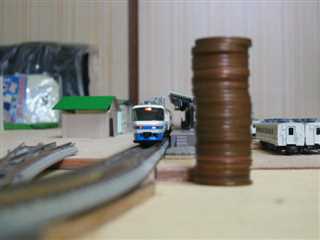 現金輸送中の車が列車待ちをしています。