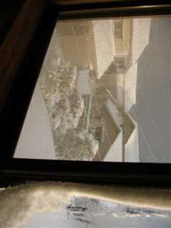 右側の固まりは、まどの外側に雪が吹雪いて付いた、雪なのです。決して、蛇ではございません。