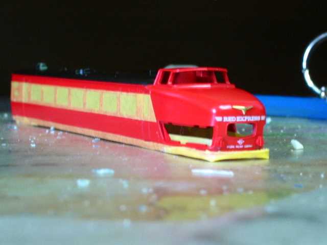 国鉄特急色を塗装する場合、クリーム>>マスキング>>クリーム>>アカ