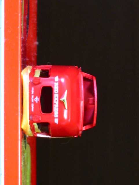 赤で全体を塗装したのなら、マスキングを施した後、もう一度「軽く」赤で吹き付けたら大分よいかと。
