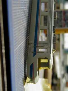 旧架線柱は成形が抜けてないから、一度黒に塗ってフレームだけ銀に塗ることに。
