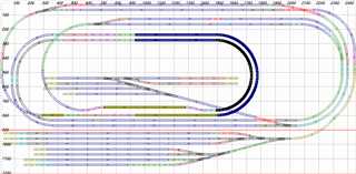 右上のダブルスリップで、本線と出入庫の動線が交差してるねぇ。