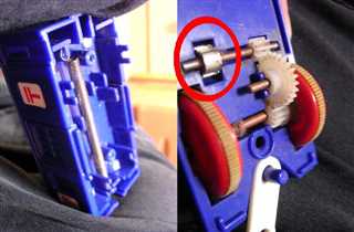 車輪からギアとシャフトを通って、赤丸してる金製のギアが回って、