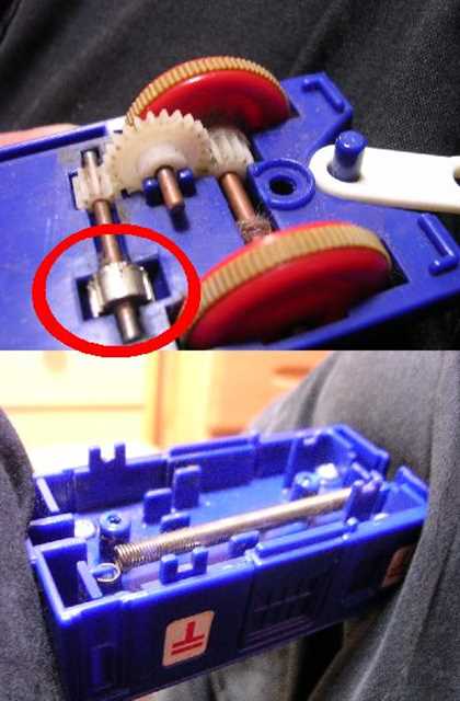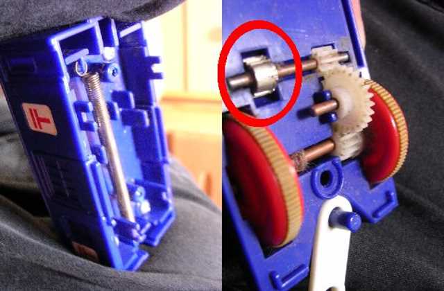 なかで車輪と連動するツメがバネをひっかいているんです。