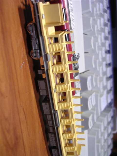 こうしてみると柵の感覚が細いので透明のプラ板に模様をつけてやると強度もそこそこに