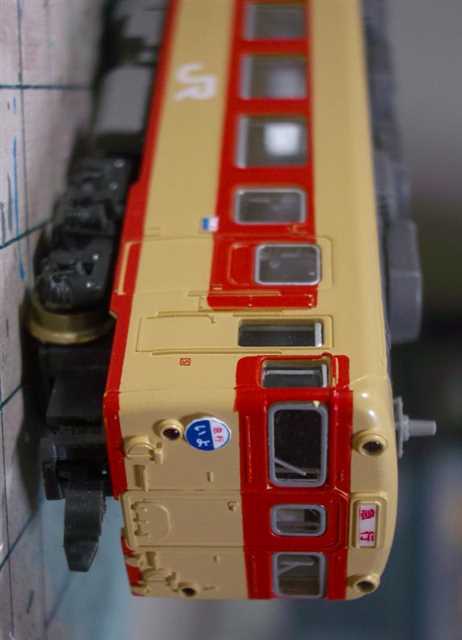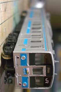 中間車連結部にはKATOカプラー密連型を、貫通型先頭車の前面にはKATOカプラー伸縮式密連型を標準装備。