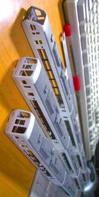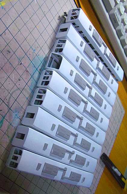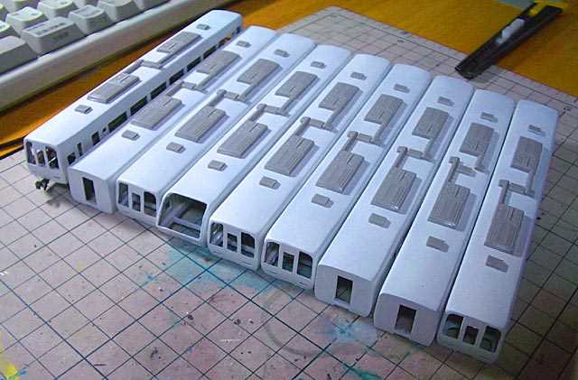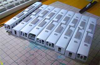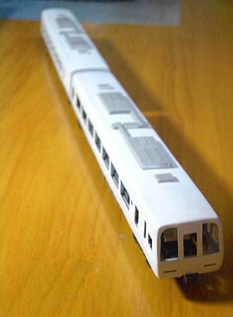 行き先表示をくっつけて、屋根のクーラを、プラ版製作に変更しました。