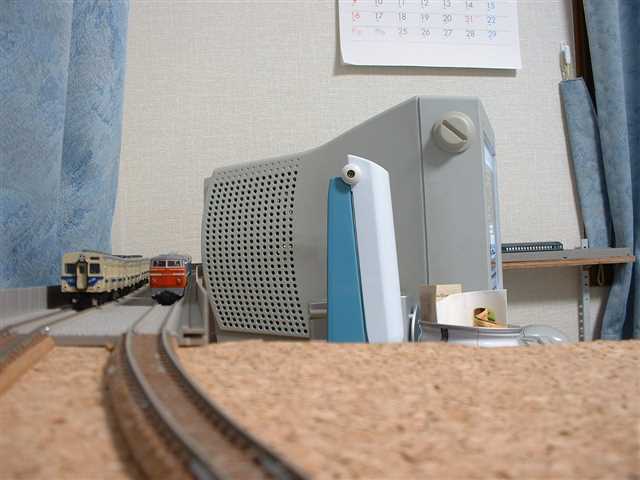 そしてさらに、予定では机の裏を通す予定だった線路をその上に通し、