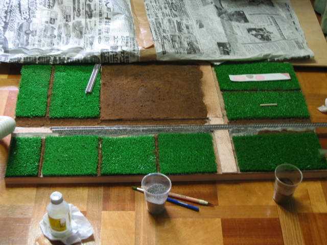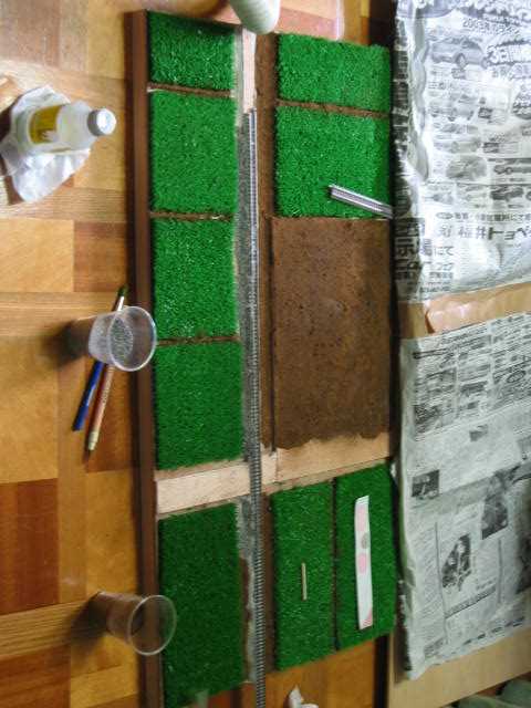 未舗装道は、この上からバラストとグリーンパウダーをふりかける予定ですぅ。