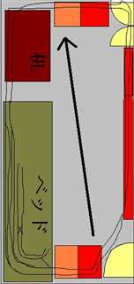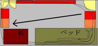 んで、その前回の棚を移動して、今日買った棚を前回の棚の場所に置いてます。(意味不明)前回の棚が、矢印の根元から先の位置へ異動してます。