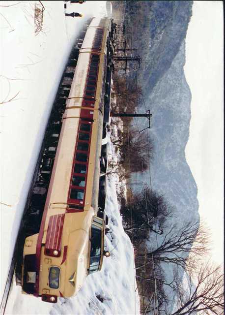 よくみるとEF81が屋根の上に乗って、キハ58は修学旅行。。。