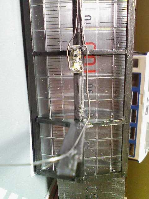 2012のチップLEDに1608の160Ωチップ抵抗をシール基板上に半田付けして、それを0.4mmくらいの亜鉛メッキ線で配線してあります。