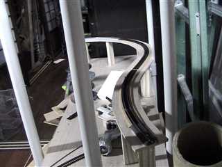 トラス橋の中で線路をカーブっ。