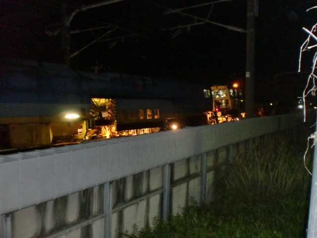 3ヶ月くらい放置状態の新品レール交換ぽい。午前4時から実質交換開始かなあ。隙間がそれしかないし。キヤ検査は来るだろうか。